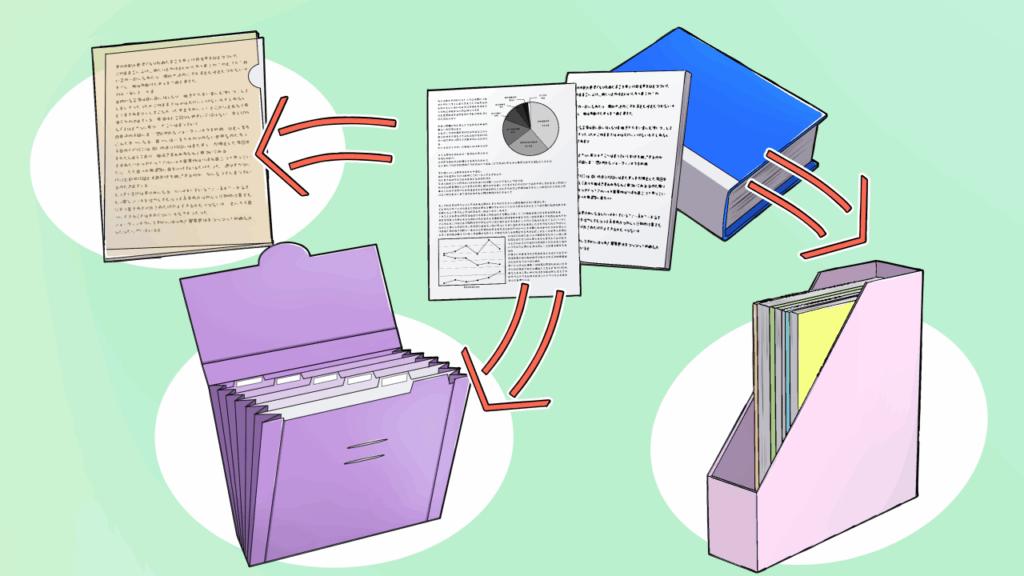 保管場所を一か所に固定することで、書類を探す時間や手間を軽減できるという最大のメリットが生まれます。